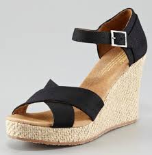Wedges are shoes with solid heels running from sole to the heel. They can either be wedge heels or wedge sandals. They are a lot more comfortable than other heels because they are sturdy and offer more arch support.