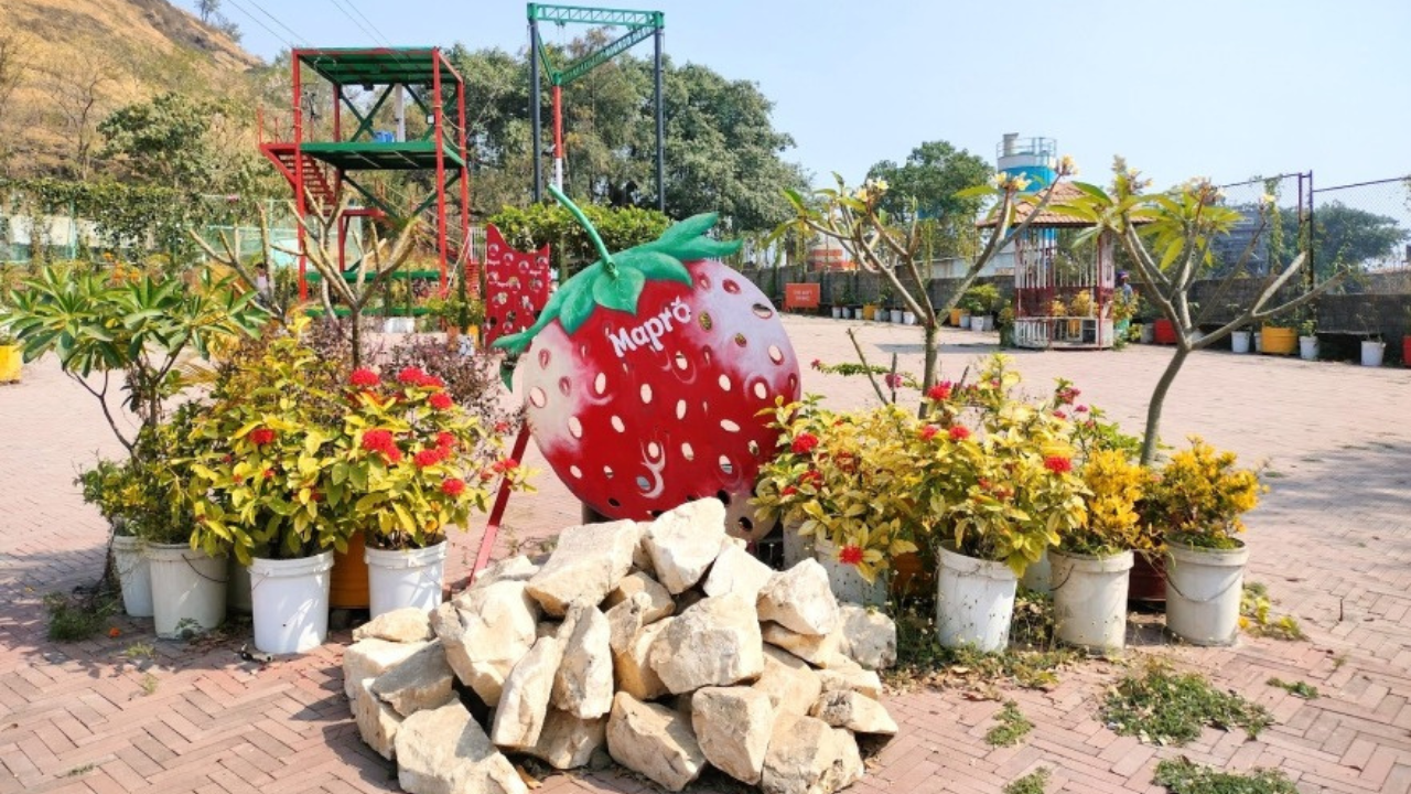 The moment you turn at Wai and see the familiar strawberry signage, something shifts. You know you’re close. The entrance, lined with bright blooms and cheerful displays, feels welcoming without being overwhelming. The aroma of freshly grilled sandwiches drifts through the air. Children instinctively gravitate toward open spaces and activity corners, while adults wander toward the sampling counters — where small cups of fruit crushes and jams are offered generously.