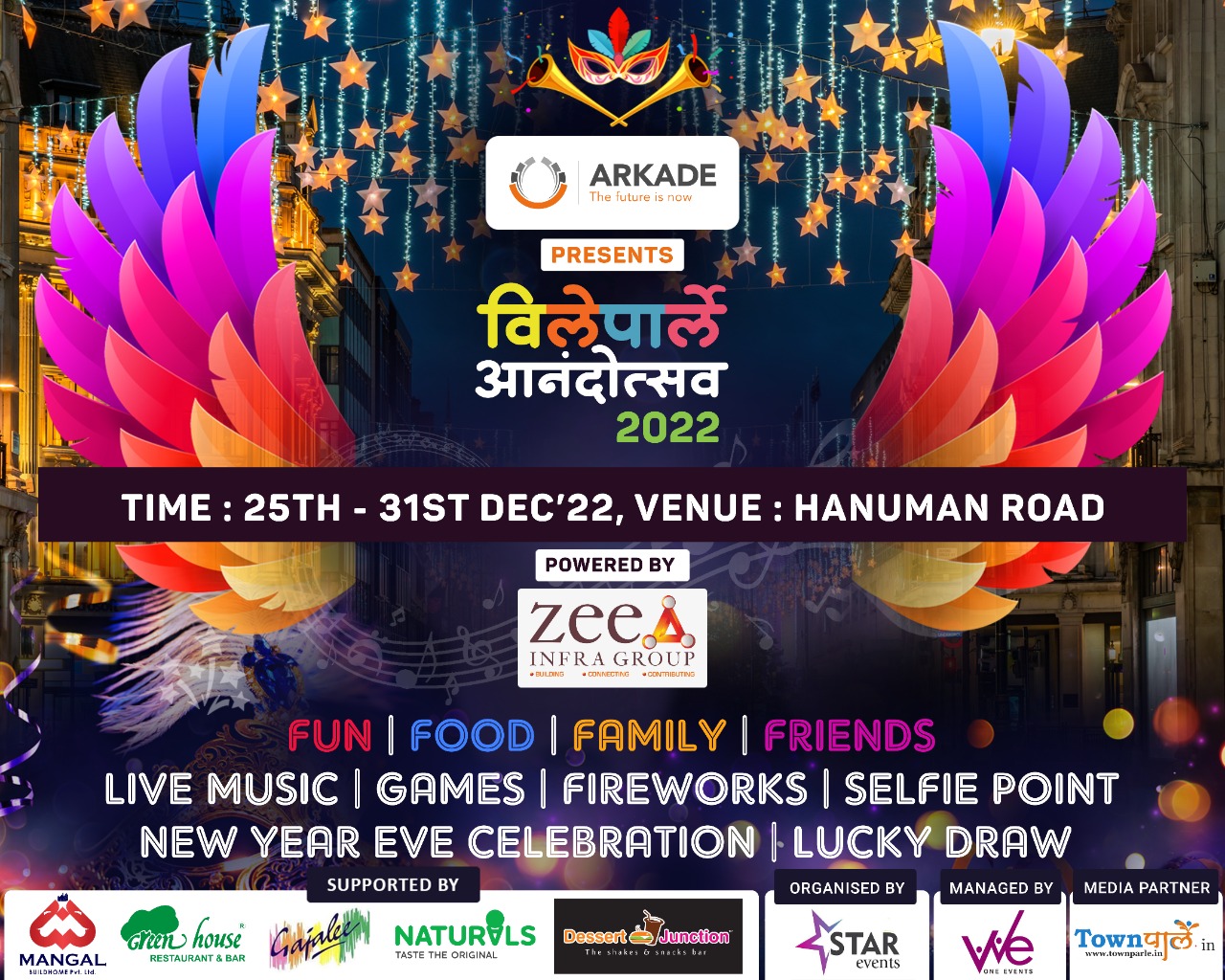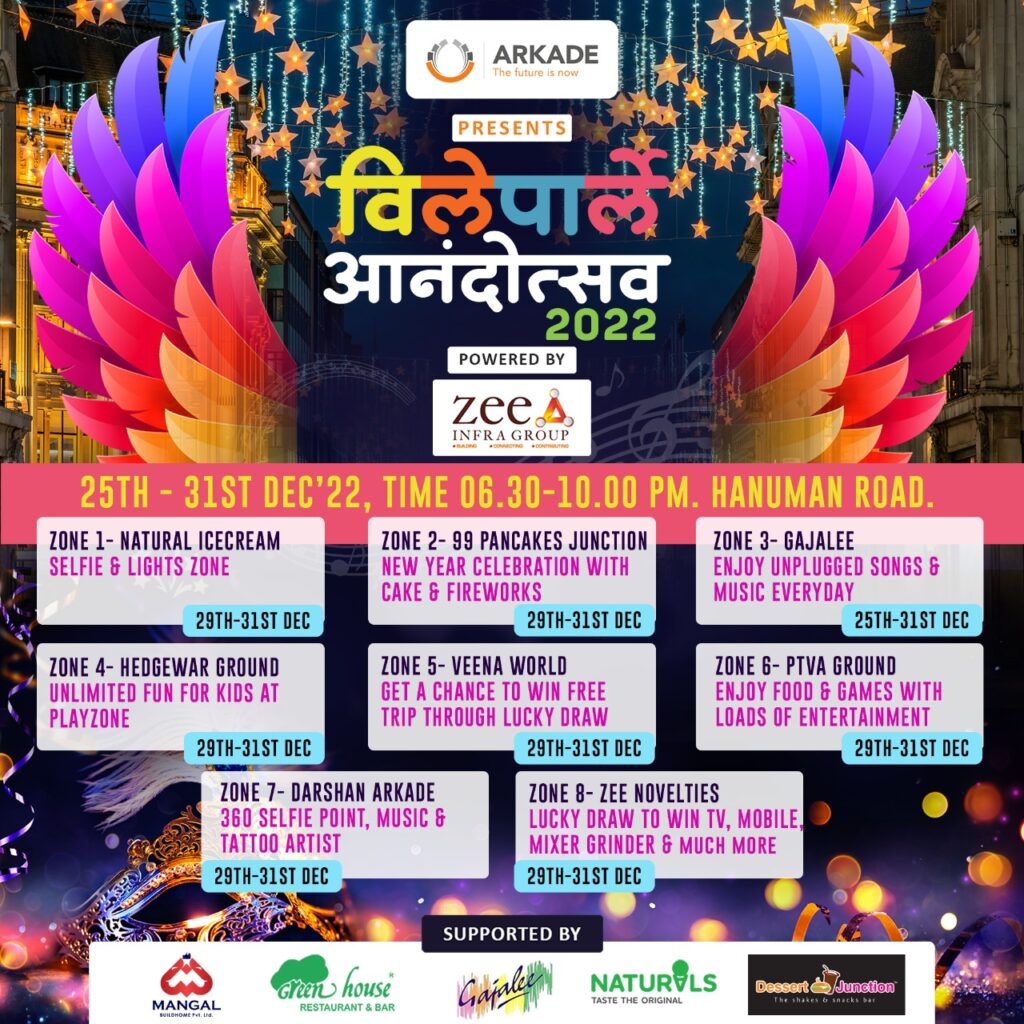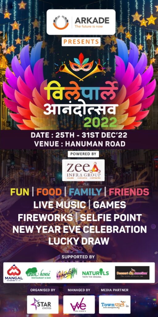 Arkade (The future is now) presents Vile Parle Anandotsav 2022 is a fun filled event which will be held from 25th December 2022 to 31st December 2022, Timing: 6.30 pm to 10 pm at Hanuman Road, Vile Parle East. “The venue will be decorated with special festive lighting.Twinkling fairy lights will adorn the whole area of Hanuman Road. Visitors will have multiple photo-ops available at various check points.