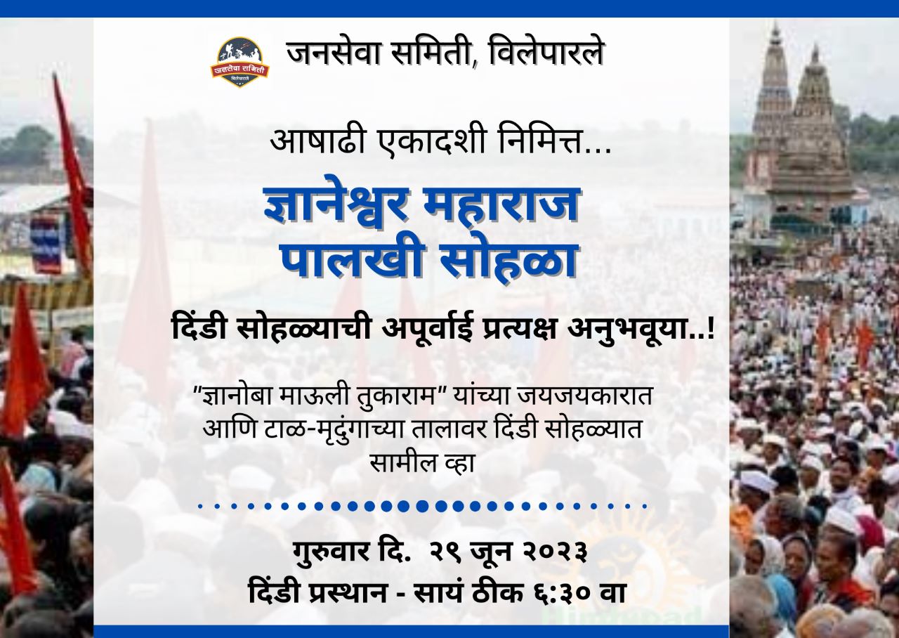 जनसेवा समितीच्या वतीने आषाढी एकादशीच्या सायंकाळी विलेपारले उपनगरात ज्ञानेश्वर महाराज पालखी सोहळा प्रतिकात्मक दिंडीच्या माध्यमातून 1990 सालापासून गेली 33 वर्षे सातत्याने आयोजित करण्यात येत आहे.
