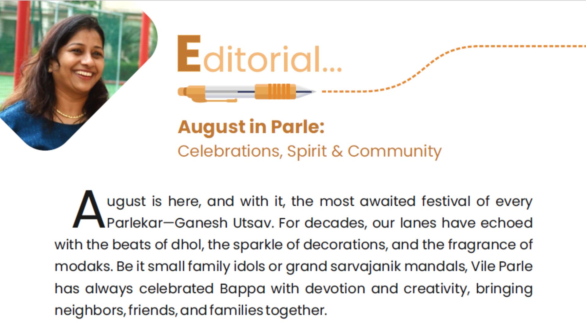 August is here, and with it, the most awaited festival of every Parlekar—Ganesh Utsav. For decades, our lanes have echoed with the beats of dhol, the sparkle of decorations, and the fragrance of modaks. Be it small family idols or grand sarvajanik mandals, Vile Parle has always celebrated Bappa with devotion and creativity, bringing neighbors, friends, and families together.