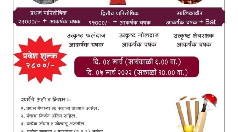 Read moreA Grand Underarm Box Cricket tournament (Day and Night) will be held in Vile Parle East at Dhurivadi Ground, Behind