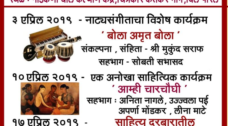 सोबतीचे एप्रिल २०१९ चे कार्यक्रम
