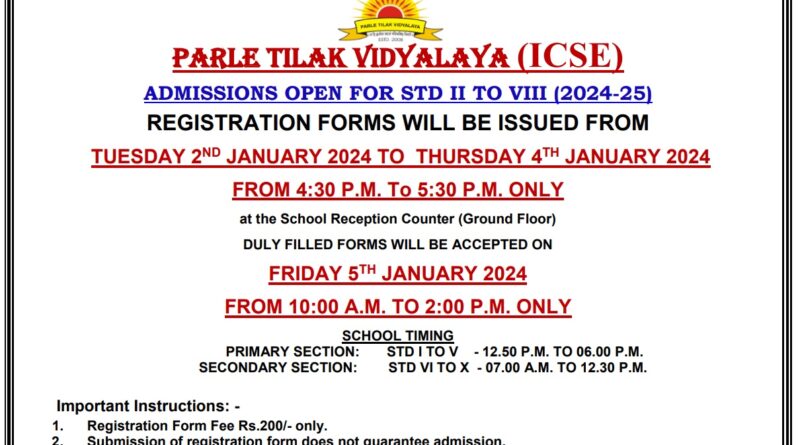 Read morePTV ICSE Admission Open for Std.II to VIII (2024-25)