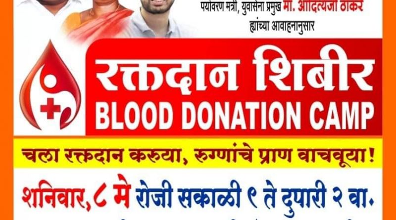 Read moreThere is a Blood donation camp organised by Yuva Sena(Shakha No. 83) & Mangalabai Bhagwat Foundation (Trustee – Advocate Veena Bhagwat).