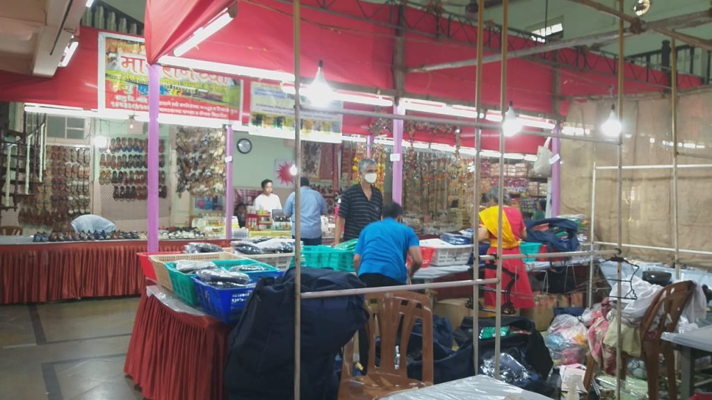 This year Grahak Peth will be in Lokmanya Seva Sangha from 15th October to 24th October from 12 noon till 8 pm everyday. Grahak peth will be in Sathe Hall, Ground Floor Creche, Gokhale Hall, Pu La Deshpande Hall and Kale Hall. This year again due to Covid-19 the ground is not covered.