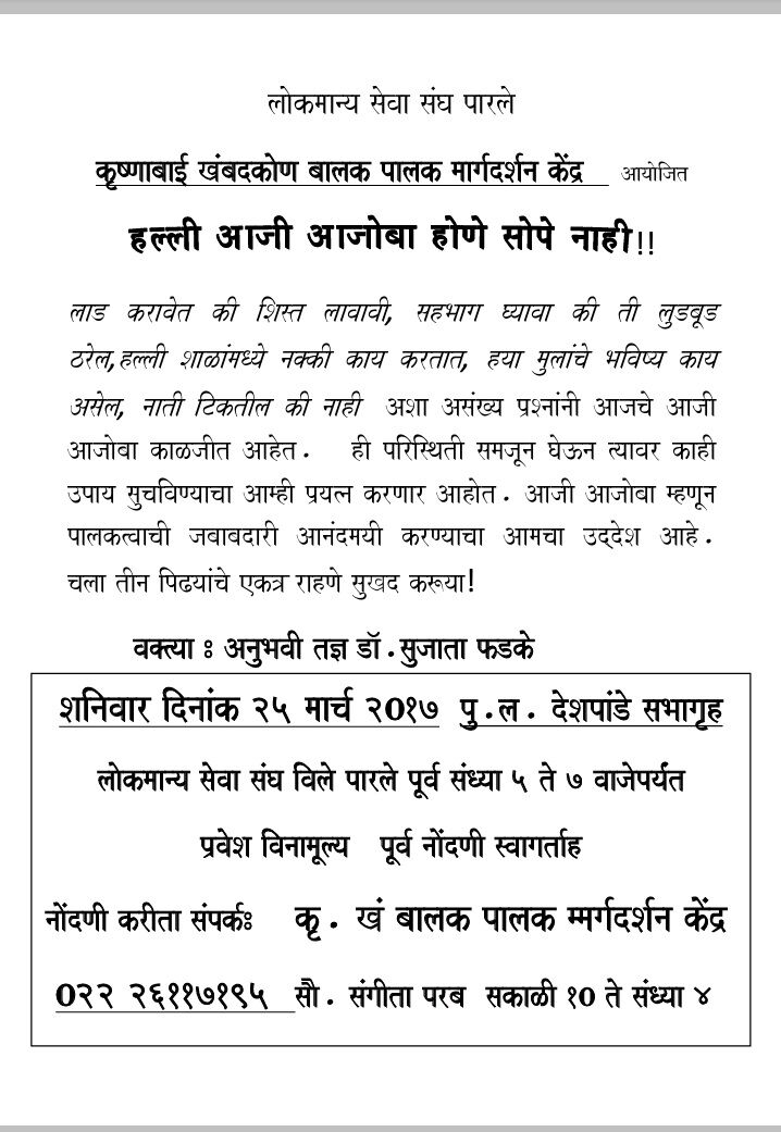 लोकमान्य सेवा संघ संस्थेच्या कृष्णाबाई खंबदकोण बालक पालक मार्गदर्शन केंद्रातर्फे अभिनव उपक्रम – हल्ली आजी आजोबा होणे सोपे नाही ..
