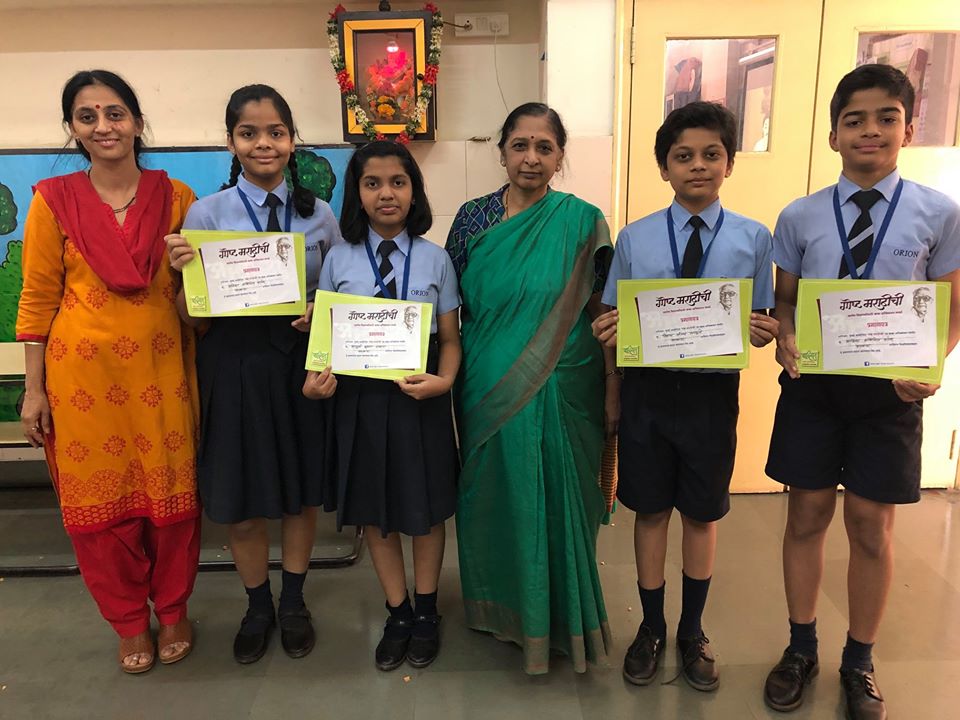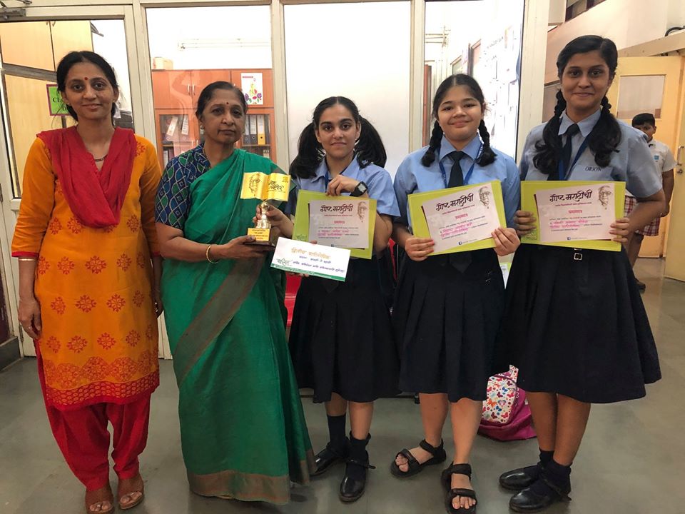 Students of Grade IX of VPMS Orion ICSE School bag trophy and the students of Grade VII get appreciation in the Inter-School ‘Marathi Abhivachan’ Competition held by Parijat Organization.