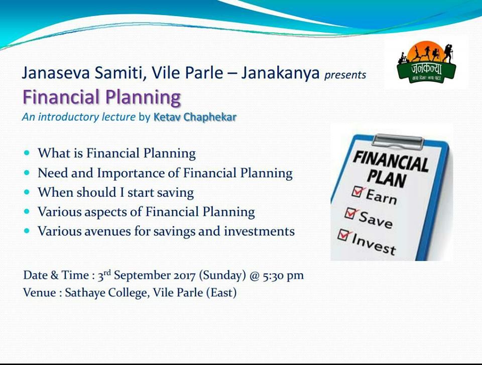 An introductory lecture on ‘Financial Planning’ by Ketav Chaphekar
