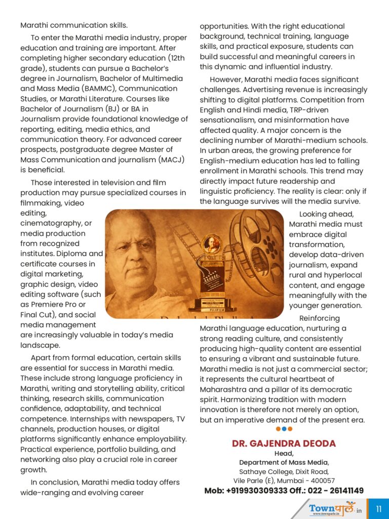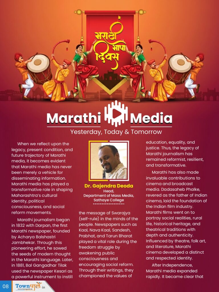 When we reflect upon the legacy, present condition, and future trajectory of Marathi media, it becomes evident that Marathi media has never been merely a vehicle for disseminating information. Marathi media has played a transformative role in shaping Maharashtra’s cultural identity, political consciousness, and social reform movements.
