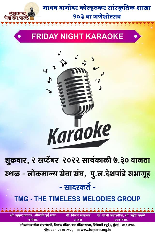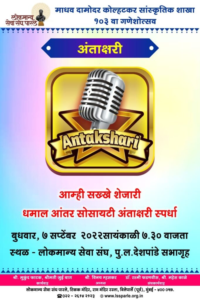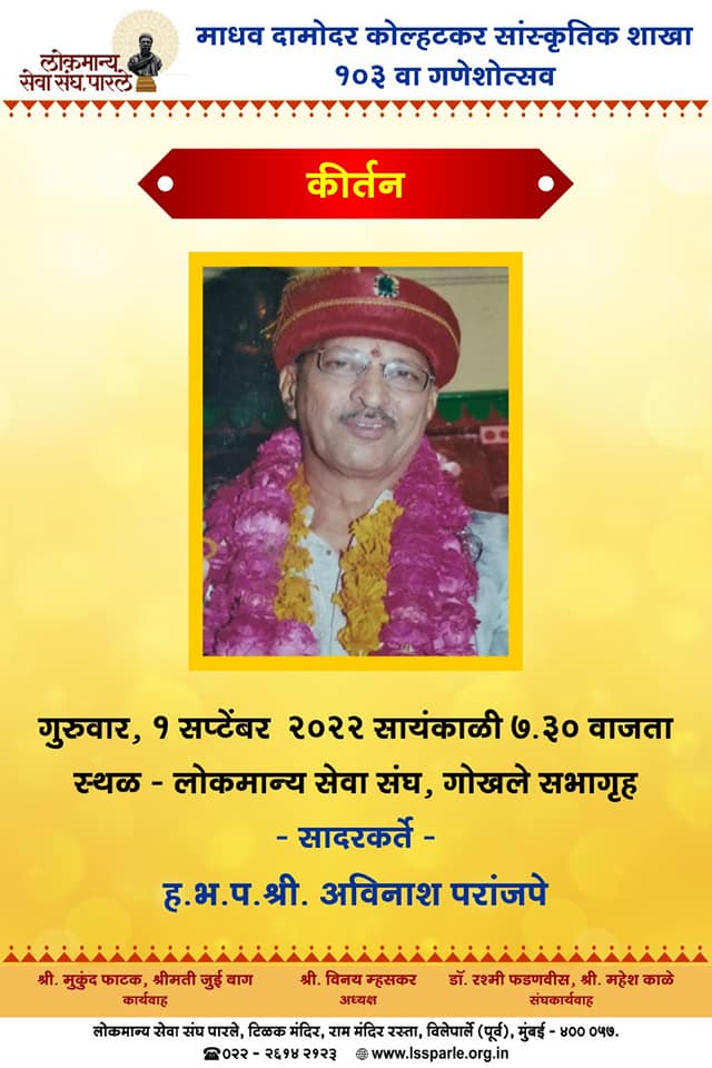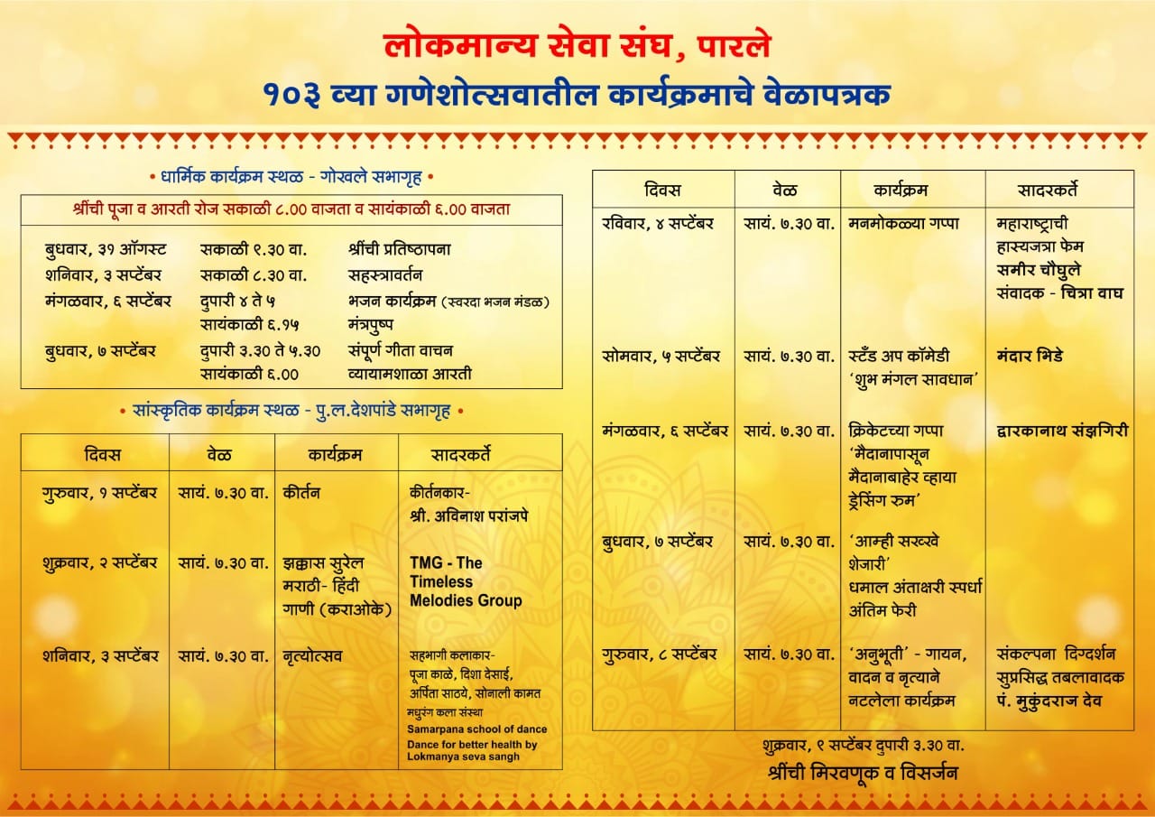 लोकमान्य सेवा संघ , पार्ले – १०३ व्या गणेशोत्सवातील कार्यक्रमांचे वेळापत्रक आणि विविध कार्यक्रमांची माहिती