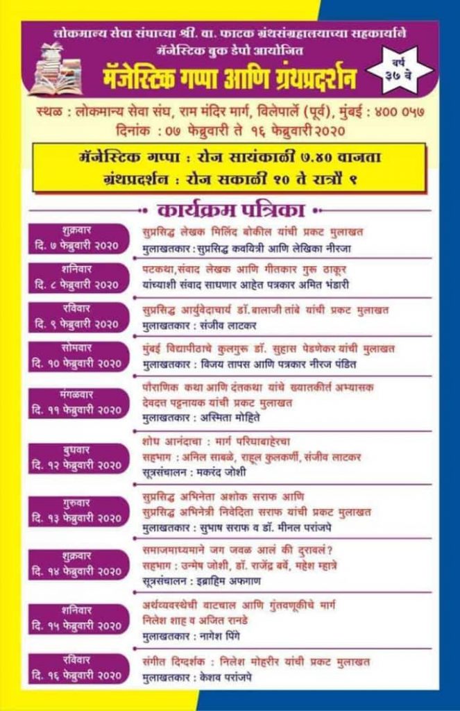 मॅजेस्टिक गप्पा – दि. ७ ते १६ फेब्रुवारी २०२०