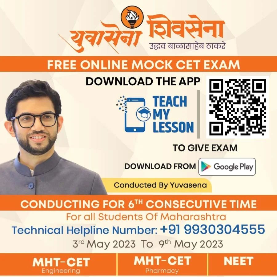 Yuvasena President Shri. Aaditya Thackeray Ji launched the Yuvasena Mock CET Exam app.