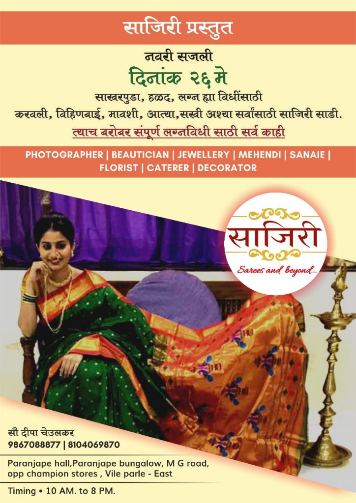 अधिक माहितीसाठी ‘साजिरी’च्या संस्थापिका दीपा चेउलकर यांना ९८६७०८८८७७ वर संपर्क करू शकता.