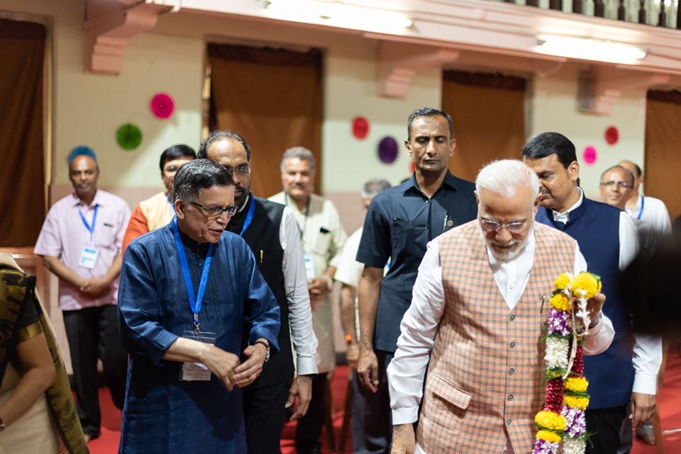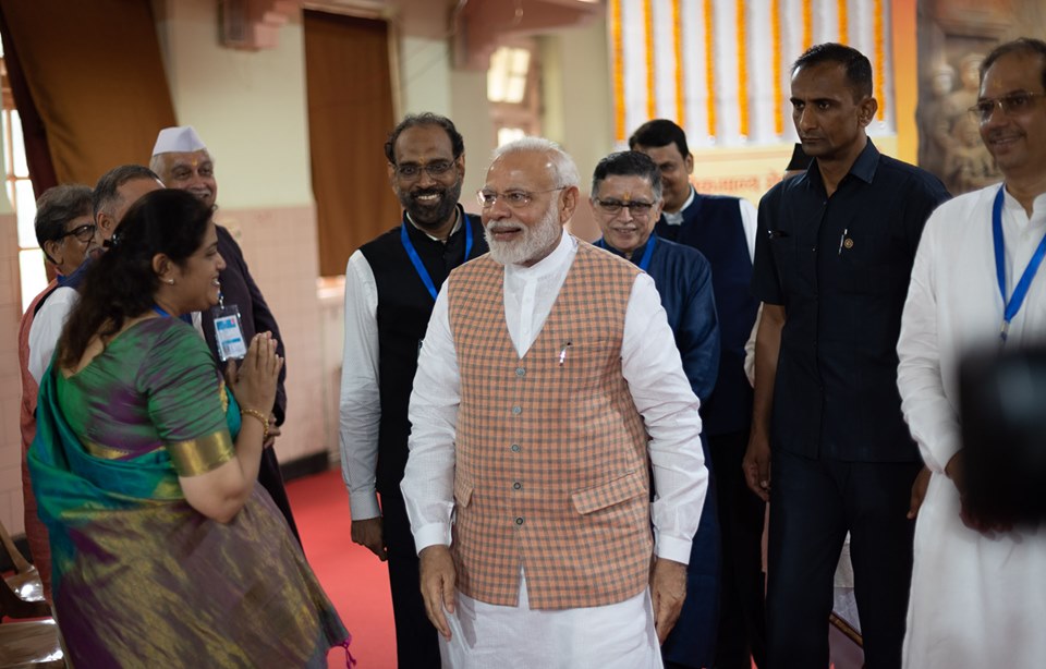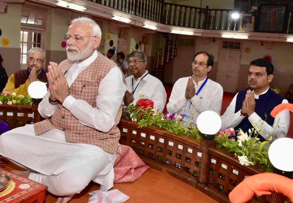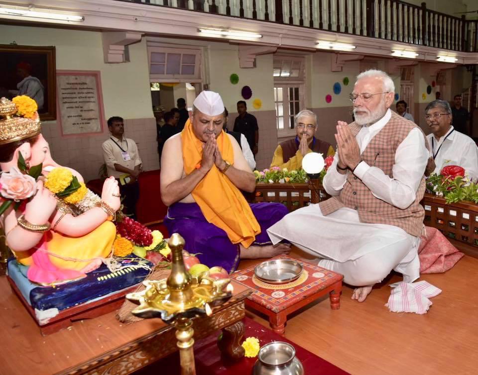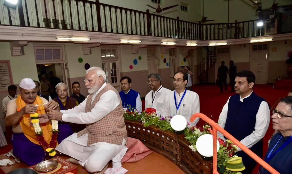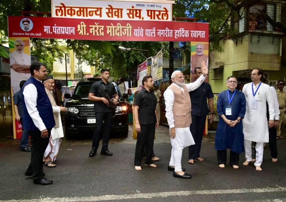 आज पंतप्रधान श्री.नरेंद्र मोदीजी यांनी विले पार्ले येथील लोकमान्य सेवा संघाच्या शतक महोत्सवी गणेशोत्सवात श्री गणरायाचे दर्शन घेतले व मनोभावे पूजन केले.ऐतेहासिक मूल्य असलेल्या शतक महोत्सवी गणेशोत्सवा निमित्ते लोकमान्य सेवा संघाचे तसेच विले पारल्याच्या सांस्कृतिक समृद्धतेचे त्यांनी विशेष कौतुक केले.याप्रसंगी त्यांच्या सोबत राज्यपाल श्रो भगतसिंग कोशियारी,मुख्यमंत्री देवेंद्र फडणवीस,परफेश अध्यक्ष चंद्रकांतदादा पाटील,मंगल प्रभात लोढा उपस्थित होते.