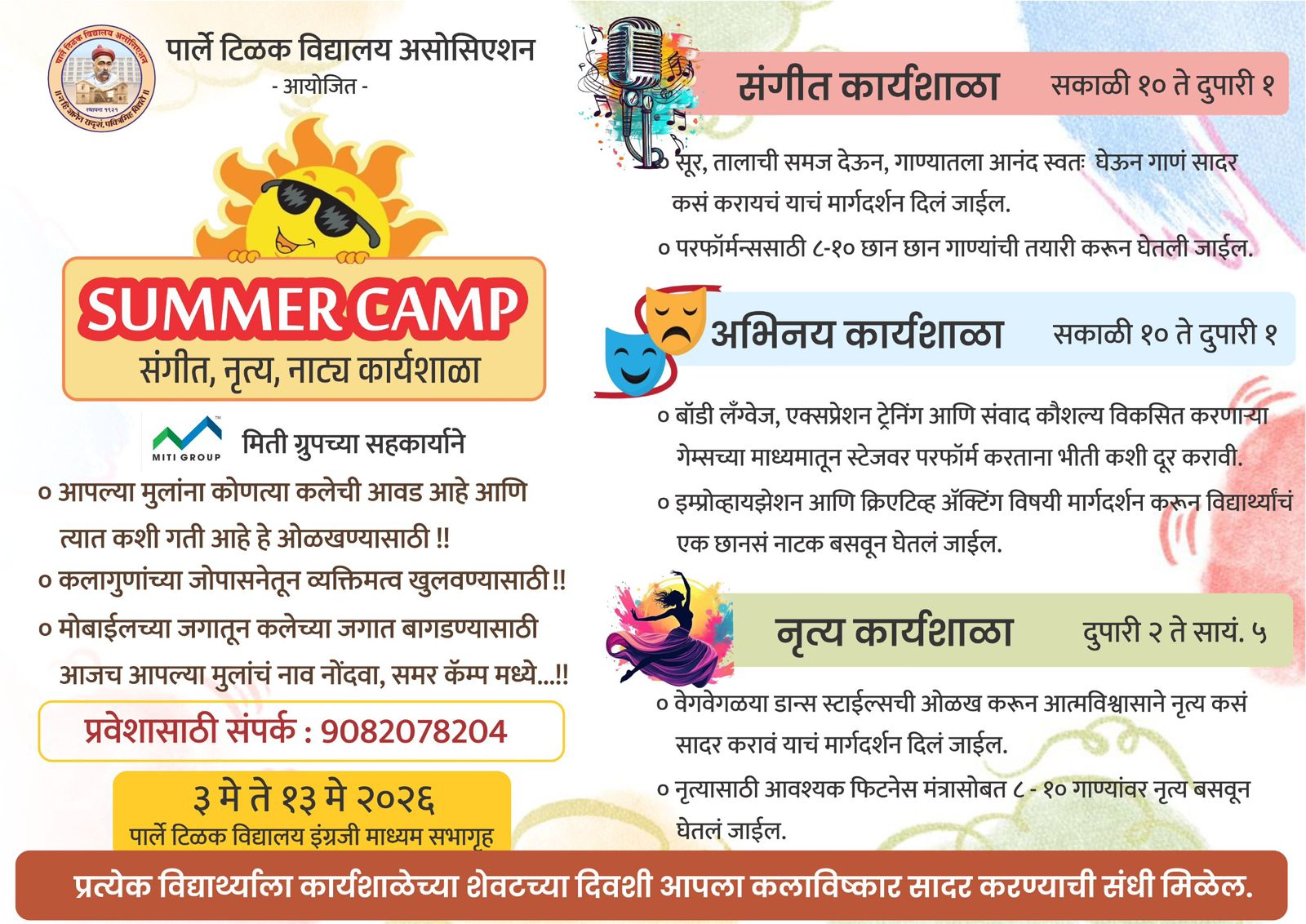 The camp will be held from May 3 to May 13, 2026, at the Parle Tilak Vidyalaya English Medium Hall. For registrations, contact: 9082078204.