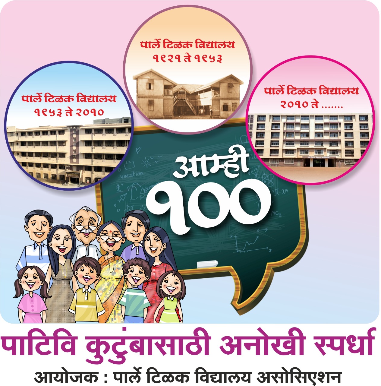 यावर्षी आपल्या पार्ले टिळक शाळेने १०० व्या वर्षात पदार्पण केले. शाळेने या शंभर वर्षात विद्यार्थ्यांच्या अनेक पिढ्या घडवल्या. “पिढ्यानपिढ्या आमच्या कुटुंबातले सर्व जण याच शाळेत शिकलो” असे अभिमानाने सांगणारी अनेक कुटुंबे पार्ल्याच्या पंचक्रोशीत आढळतात. अश्या पा.टि. वि. कुटुंबांसाठी एक आगळी वेगळी स्पर्धा आयोजित केली आहे-“आम्ही शंभर”.या स्पर्धेत सहभागी होण्यासाठी तुमच्या कुटुंबातील सर्व पिढ्यातील सर्व सदस्यांची मिळून शाळेतील विद्यार्थीदशेतील एकूण वर्षांची बेरीज १०० किंवा अधिक असणे आवश्यक आहे. स्पर्धेच्या अधिक माहितीसाठी खाली दिलेल्या लिंकवर क्लिक करा. ही स्पर्धा केवळ पार्ले टिळक विद्यालय मराठी माध्यम शाळेतील आजी माजी विद्यार्थ्यांसाठीच आहे.