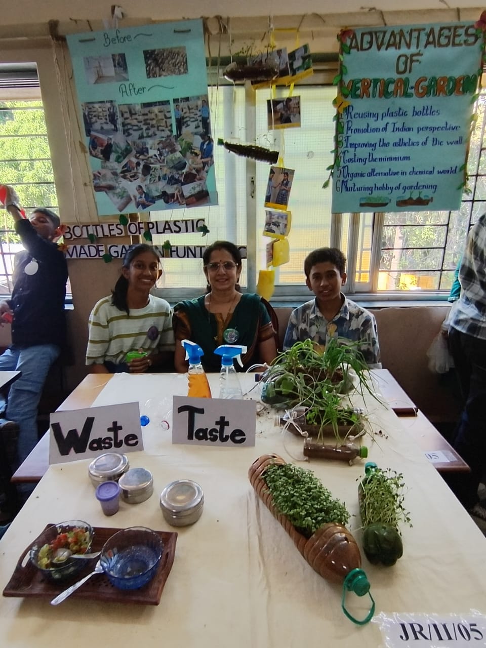 In the Junior Group Category, the school secured the First Prize for the project titled “Bottles of Plastic Make Garden Fantastic”. The project showcased the concept of vertical farming, demonstrating how everyday plastic bottles can be reused to grow microgreens, spring onions, garlic, pudina, ajwain, curry leaves and chillies. Based on the theme of ‘waste to taste’, the project highlighted sustainable food practices and environmental awareness.
