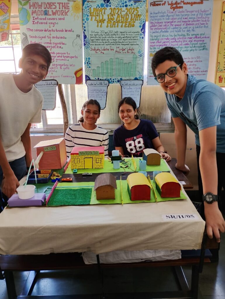 The project was guided by Mrs. Anjalee Bhoj, with students Ansh Jat, Aditya Varankar, Jivisha Vesawkar and Sthira Divekar participating.