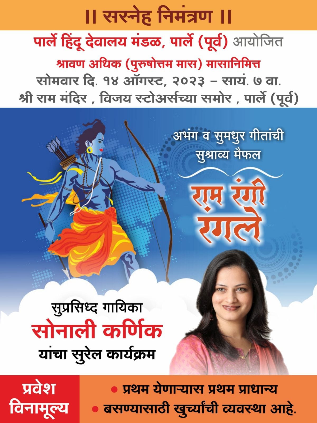 राम रंगी रंगले – १४ ऑगस्ट, २०२३ – सायं. ७ वा. श्री राम मंदिर
