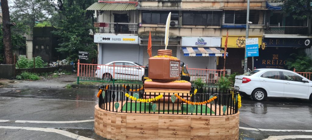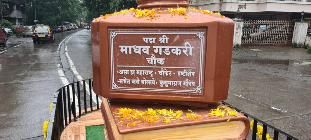 Roaming around in Vile Parle checking what is newly done and what not, today bought us to the renovated signage at Madhav Gadkari Chowk, opp Godrej Nature’s Basket, Ram Bhau Barve Marg, Vile Parle East. The original look of the signage has been restored post-repair work. The renovation work has been done from the Development Funds of Corporator Jyoti Alavani.