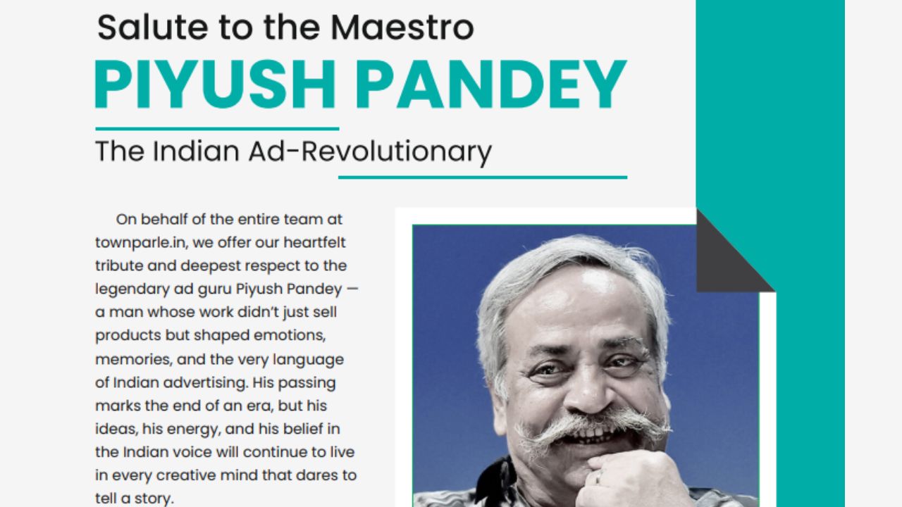 Rest in peace, Piyush Pandey Sir. Your ideas will keep inspiring every storyteller, every advertiser, and every dreamer who believes that words can change the world. You made us laugh, you made us think, and you made us proud to be part of an India that speaks from the heart. From all of us at townparle.in,