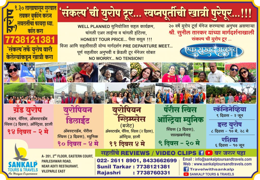 संकल्प टूर्स अँड ट्रॅव्हल्स ची युरोप टूर फक्त 1.50 लाखांपासून …