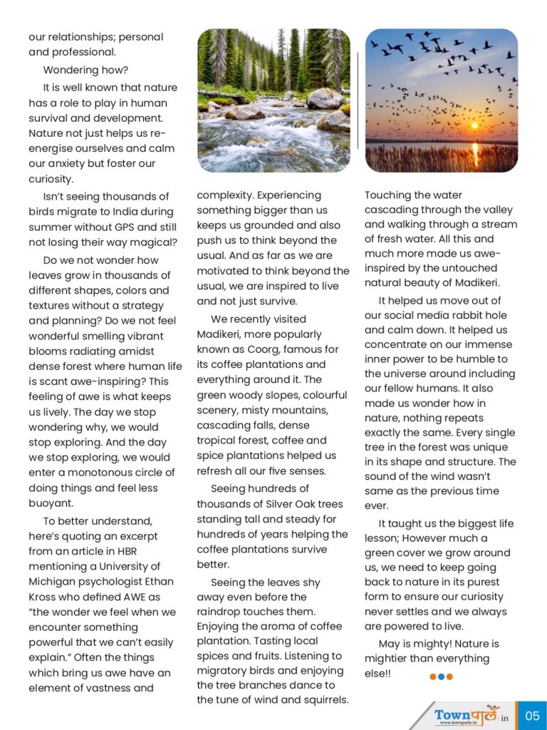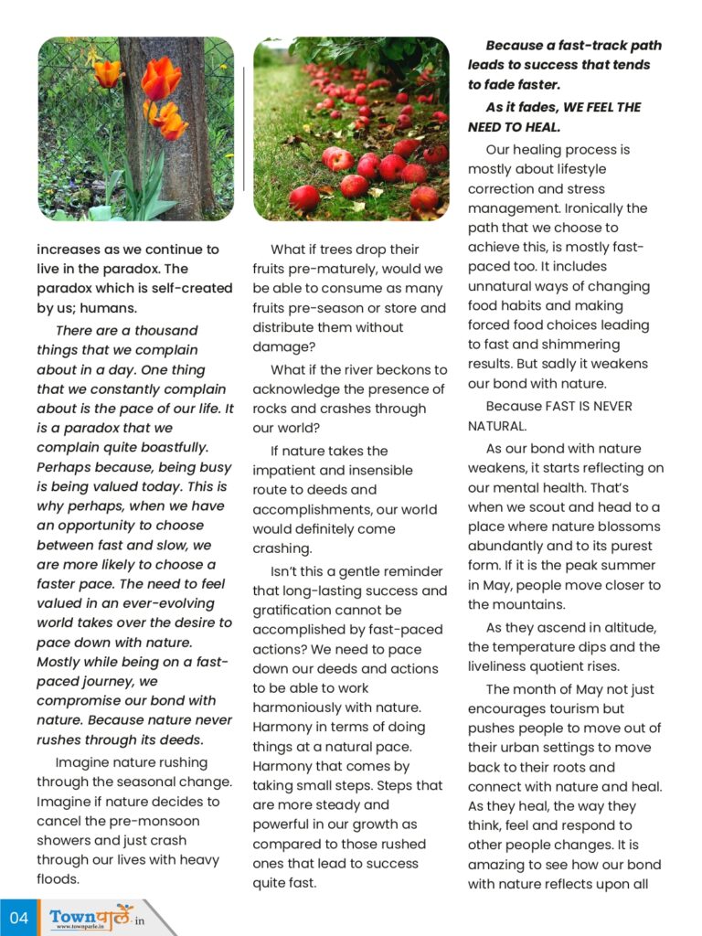 The month of May not just encourages tourism but pushes people to move out of their urban settings to move back to their roots and connect with nature and heal. As they heal, the way they think, feel and respond to other people changes. It is amazing to see how our bond with nature reflects upon all our relationships; personal and professional.