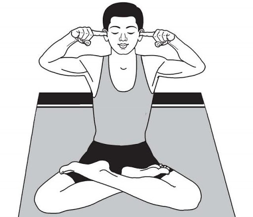 तुमच्या हाताची अंगठ्याच्या शेजारील दोन्ही बोटे कान आणि गाल यांच्यामध्ये असलेल्या कानाच्या भागावर ठेवावीत.