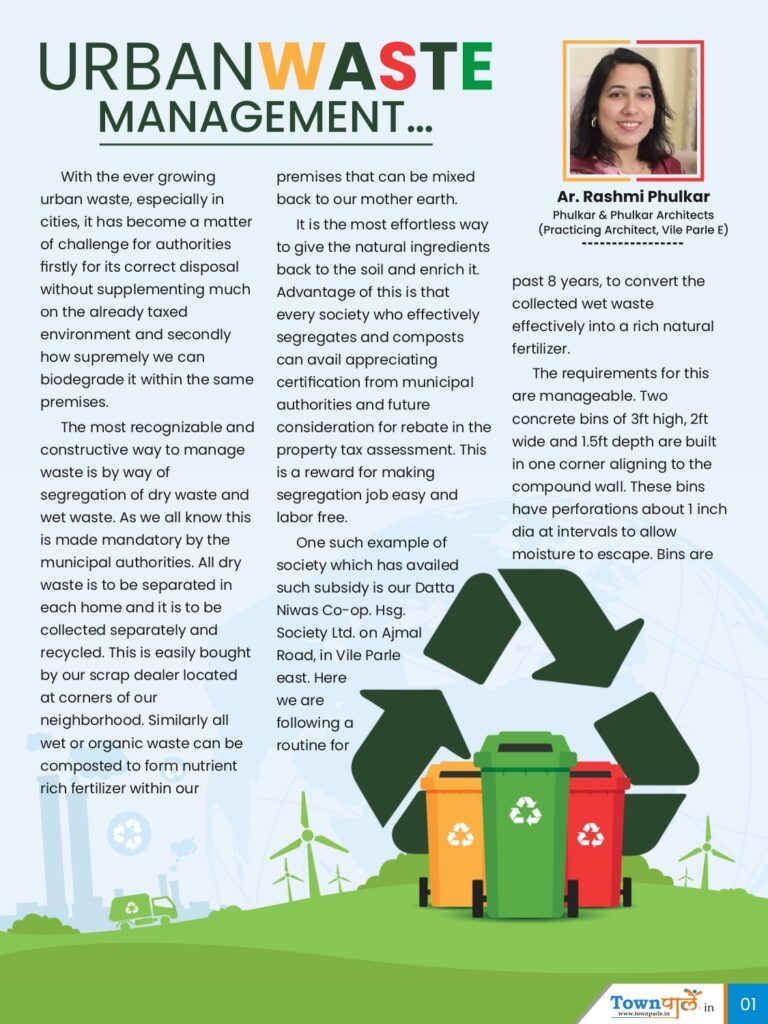 It is the most effortless way to give the natural ingredients back to the soil and enrich it. Advantage of this is that every society who effectively segregates and composts can avail appreciating certification from municipal authorities and future consideration for rebate in the property tax assessment. This is a reward for making segregation job easy and labor free.