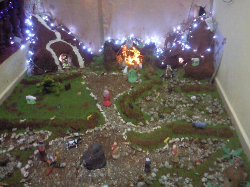 मघाशी म्हटल्याप्रमाणे आपल्याकडे जसे दिवाळीला किल्ले बनवितात तसे येथे क्रिब….येशूचे जन्मस्थान…गोठ्याची प्रतिकृती बनवितात. या ख्रिसमस क्रिबमध्ये शिशु येशू, त्याची आई, मेरीआणि वडील जोसेफ, मेंढपाळ, मेंढ्या आणि देवदूत, शेतातील इतरही प्राणी उदा. बैल, उंट, गाढव, थोडक्यांत ‘गॉस्पेल ऑफ मॅथ्यू’मध्ये वर्णन केलेली सर्वजण येथे हजेरी लावतात.गोव्याचे वैशिष्ठय म्हणजे चर्चतर्फे घरगुती आणि सार्वजनिक अशा क्रिबच्या दोन स्पर्धा आयोजित केल्या जातात. बक्षिसांची रक्कमही मोठी असते.(सरकारी अनुदान त्यासाठी दिले जाते.) त्यामुळे घरोघरी लहान मुले तर अति उत्साही असतातच पण घरातील मोठी मंडळी त्यांना पाठींबा देत मदतही करतात.माझ्या गोव्यातील वास्तव्यात विविध ठिकाणी,जिथे बदली होईल तिथे राहिले आणि प्रत्येकवर्षी घरमालकाच्या मुलांना, आजूबाजूच्या मुलांना क्रिबसाठी हातभार लावण्याचा आनंद घेतला.नाक्यानाक्यांवर उभे केलेल्या या प्रतिकृती बघत फिरायला खूप मजा येते. रात्रीची जेवणं झाली की घरमालकीण आवाज देई, “चल गो”, आणि आजूबाजूच्या सगळ्यांबरोबर हास्यविनोद करीत ,मागच्या वेळचा बरा होता की ह्यो ..अशा चर्चा करीत, रोषणाई बघत मस्त रपेट होई.सर्वांत मोठा आणि प्रेक्षणीय पणजीमधील चर्च ऑफ अवर लेडी ऑफ द इमॅक्युलेट कॉन्सेप्शन समोरचा! दिवसरात्र तेथे गर्दी असते तो पाहण्यासाठी. सार्वजनिक स्पर्धांमध्ये बक्षिसपात्र मंडळांना पुढच्यावर्षी येथे क्रिब करायची संधी दिली जाते.